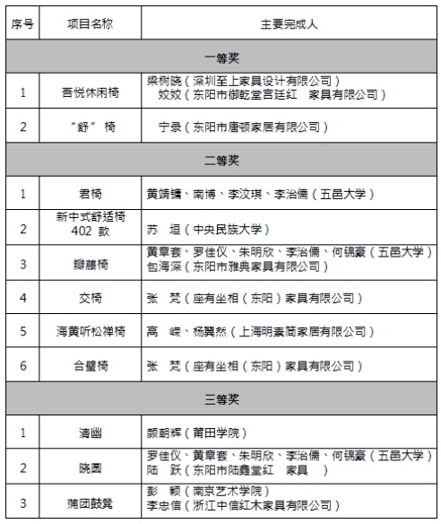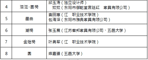 附:第三届“中国的椅?——品质·东阳”原创作品 征集活动授奖项目名单